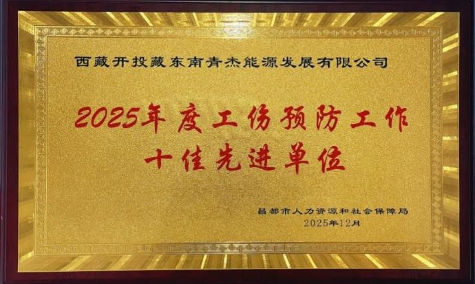 喜報!藏東南青杰能源公司榮獲昌都市“2025年度工傷預防工作十佳先進(jìn)單位”稱(chēng)號