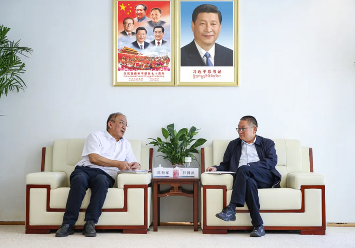 7月7日,西藏開(kāi)投集團黨委書(shū)記、董事長(cháng)祁騰武在拉薩與中國能建中南電力設計院黨委書(shū)記、董事長(cháng)陳新軍舉行座談。西藏開(kāi)投集團黨委委員、副總經(jīng)理鄧強,中國能建中南電力設計院黨委委員、副總經(jīng)理殷幼軍等參加。