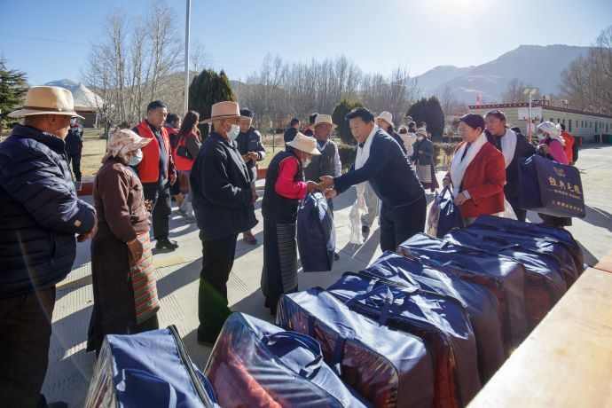 在第40個(gè)國際志愿者日到來(lái)之際,為踐行國企社會(huì )責任,弘揚中華民族尊老愛(ài)老傳統美德,12月5日下午,自治區政府國資委機關(guān)黨委聯(lián)合集團機關(guān)黨委走進(jìn)拉薩市達孜區金葉敬老院,開(kāi)展“愛(ài)如春風(fēng)拂銀發(fā),關(guān)心入微暖一冬”志愿服務(wù)活動(dòng),為88名“三無(wú)”老人送去冬日溫暖,以實(shí)際行動(dòng)傳遞黨的關(guān)懷。