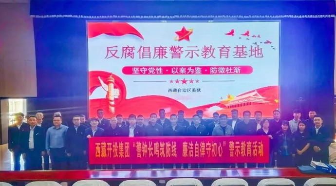 為扎實(shí)開(kāi)展深入貫徹中央八項規定精神學(xué)習教育,堅定不移推進(jìn)全面從嚴治黨向縱深發(fā)展,筑牢黨員干部職工拒腐防變思想堤壩,6月26日,西藏開(kāi)投集團組織黨員干部職工赴西藏自治區監獄管理局廉政警示教育基地開(kāi)展“警鐘長(cháng)鳴筑防線(xiàn),廉潔自律守初心”警示教育活動(dòng)。集團黨委委員、副總經(jīng)理溫勇、尼瑪與集團總部、所屬單位黨員干部職工共70余人參加活動(dòng)。