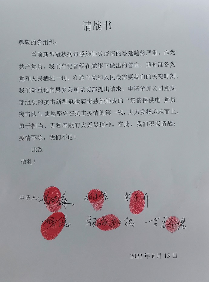 萬(wàn)眾一心,就沒(méi)有翻不過(guò)的山;心手相牽,就沒(méi)有跨不過(guò)的坎。下一步,果多水電公司將繼續用實(shí)際行動(dòng)筑牢疫情防控鋼鐵防線(xiàn),一手抓疫情防控,一手抓電力保供,在戰疫行動(dòng)中彰顯“國之重器”的責任擔當,用最赤誠的初心、最迅速的行動(dòng)、最有力的舉措,在“大戰”中踐行初心使命,在“大考”中交出合格答卷,共同編織橫向到邊、縱向到底的疫情防控和安全生產(chǎn)“光明網(wǎng)”,為全面奪取疫情防控新勝利貢獻“開(kāi)投”力量。