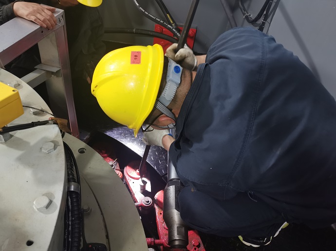 藏中電網(wǎng)異步聯(lián)網(wǎng)運行期間,雷雨季節易受雷擊容易跳閘。根據《電網(wǎng)運行風(fēng)險預警通知單》要求,金橋水電站及時(shí)調整運行方式。9月17日至18日,利用機組停機時(shí)間,公司組織對1號、2號機組開(kāi)展過(guò)流部件檢查工作,及時(shí)對蝸殼異物進(jìn)行清理和更換剪斷銷(xiāo),全力保障機組安全穩定運行。