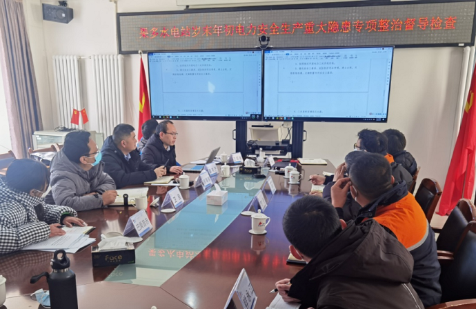 果多水電公司向督導組匯報了2022年電力安全生產(chǎn)工作情況及歲末年初電力安全生產(chǎn)重大風(fēng)險隱患專(zhuān)項整治排查工作情況。督導組查閱了果多水電公司關(guān)于上級文件精神宣貫落實(shí)、電力安全生產(chǎn)風(fēng)險重大隱患排查整治、迎峰度冬等相關(guān)工作臺賬,按照《重大電力安全隱患判定標準》對穩定控制系統、繼電保護系統、升壓站等設備的運行、維護和檢修情況進(jìn)行了現場(chǎng)督導。