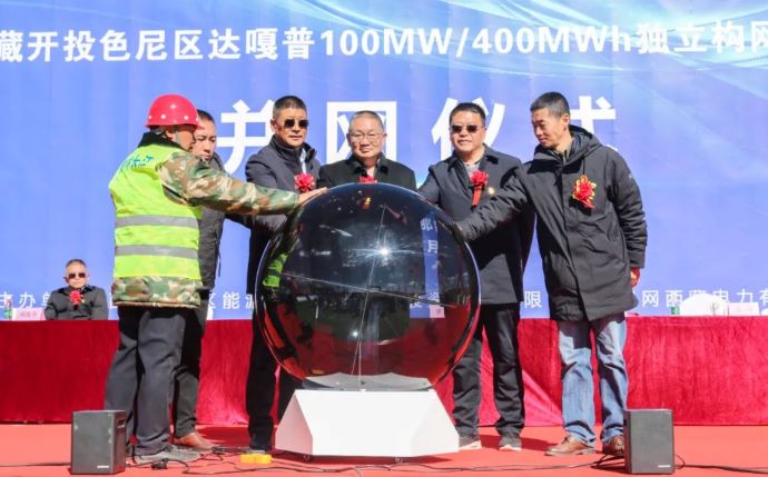 西藏開(kāi)投色尼區達嘎普獨立構網(wǎng)型儲能項目并網(wǎng)儀式現場(chǎng)。達娃 攝