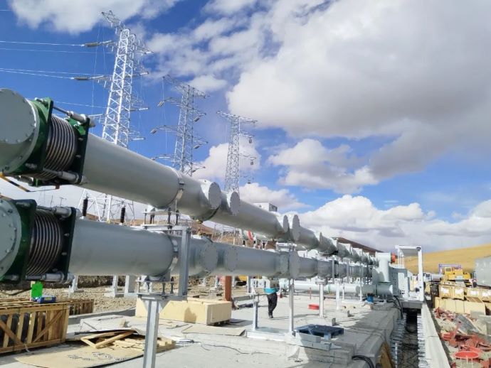 西藏開(kāi)投色尼區達嘎普獨立構網(wǎng)型儲能電站GIS安裝。(圖由中國電建集團華東院提供)