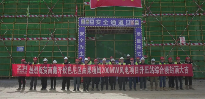 伴隨最后一方混凝土緩緩入倉,西藏自治區在建的最大風(fēng)電項目——西藏開(kāi)投色尼區曲果嘎姆200MW風(fēng)電項目升壓站綜合樓順利封頂。