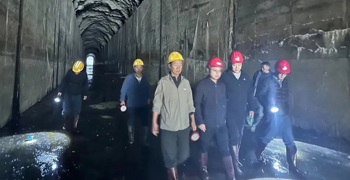 檢查組重點(diǎn)檢查了泄洪洞洞身襯砌及啟閉設備,確認洞身襯砌無(wú)明顯裂縫、滲漏情況,泄洪能力達標,但發(fā)現部分地面有侵蝕坑洼,洞壁少量滲水,均已記錄。廠(chǎng)房各設備運行狀況良好,各項參數正常;廠(chǎng)房伸縮縫有少量滲水,需持續觀(guān)察;電纜室廢舊電纜需按規定統一整理堆放。尾水河道和沖溝檢查中,未發(fā)現尾水河道存在影響行洪的漂浮物和嚴重淤積現象。