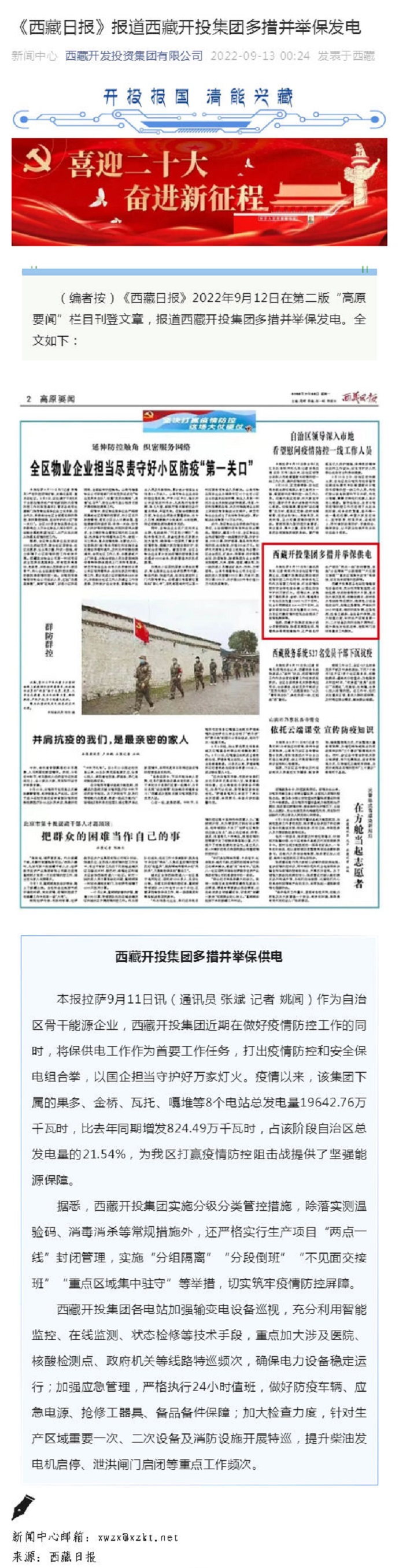 【西藏日報】報道西藏開(kāi)投集團多措并舉保發(fā)電
