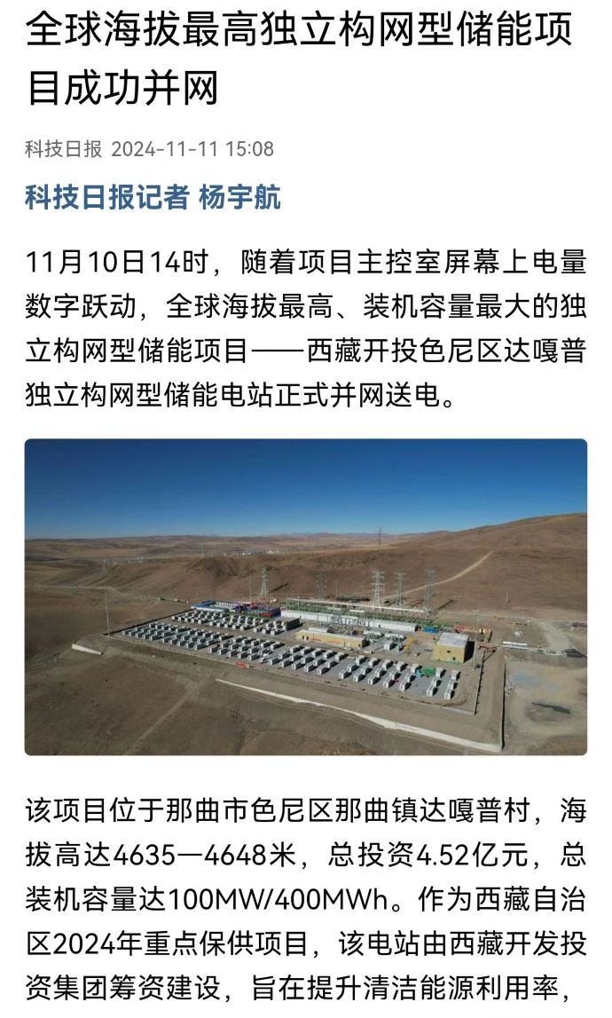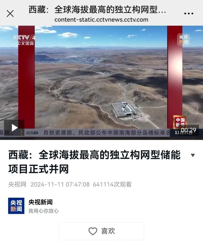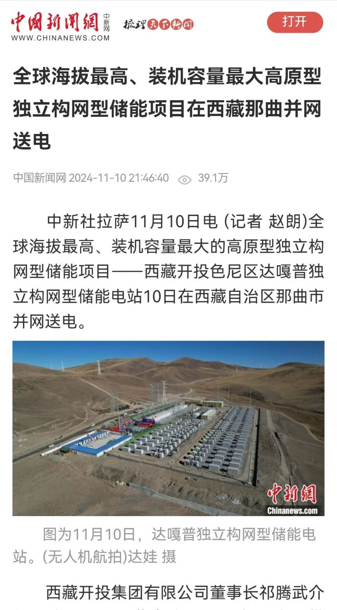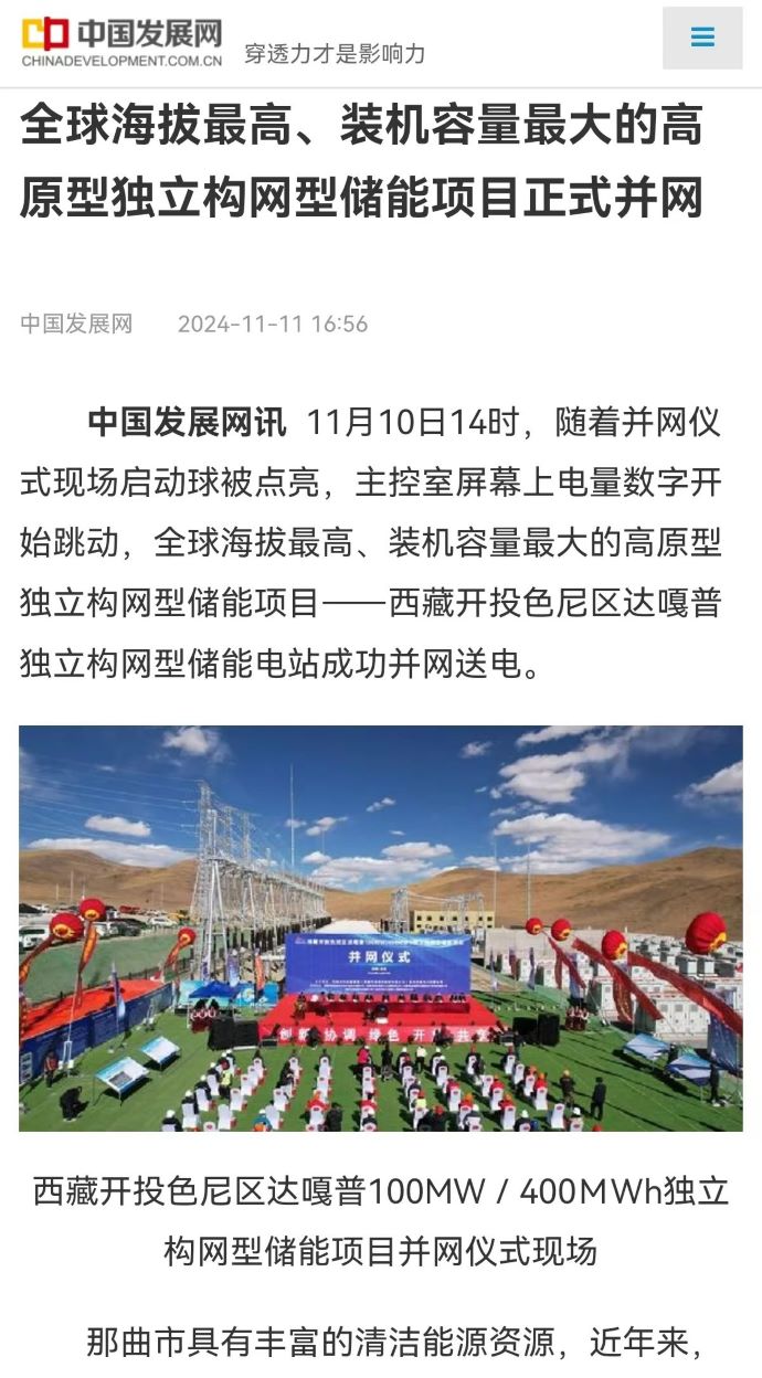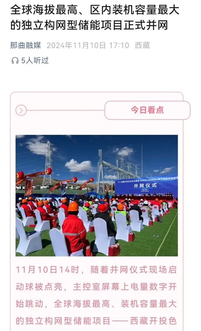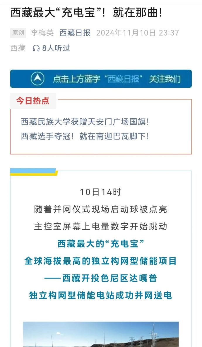實(shí)力刷屏!各級媒體聚焦報道西藏開(kāi)投色尼區獨立構網(wǎng)型儲能項目
