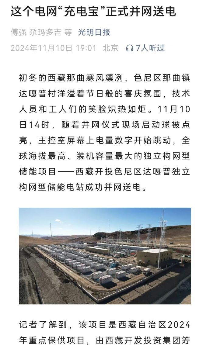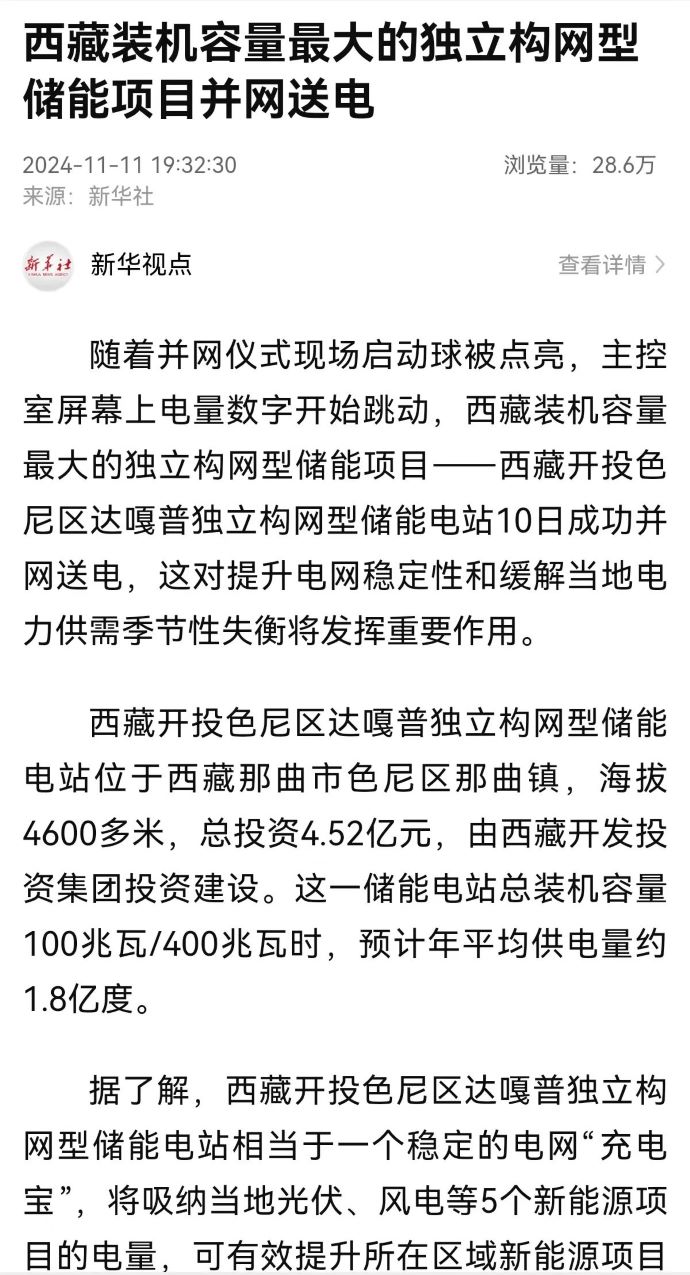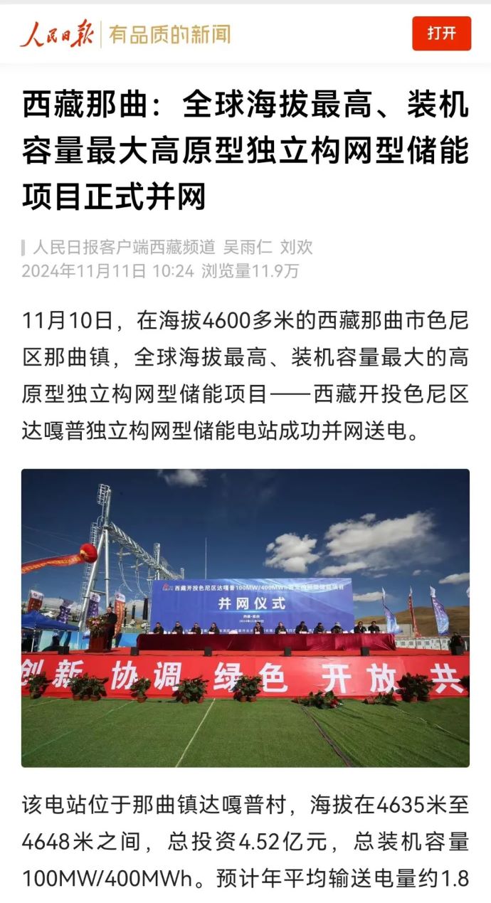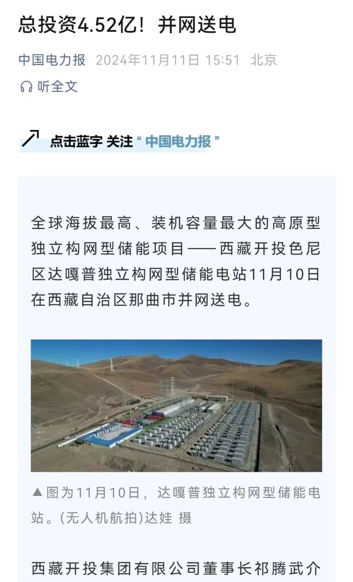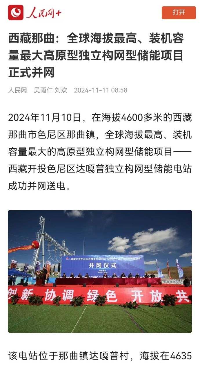 實(shí)力刷屏!各級媒體聚焦報道西藏開(kāi)投色尼區獨立構網(wǎng)型儲能項目