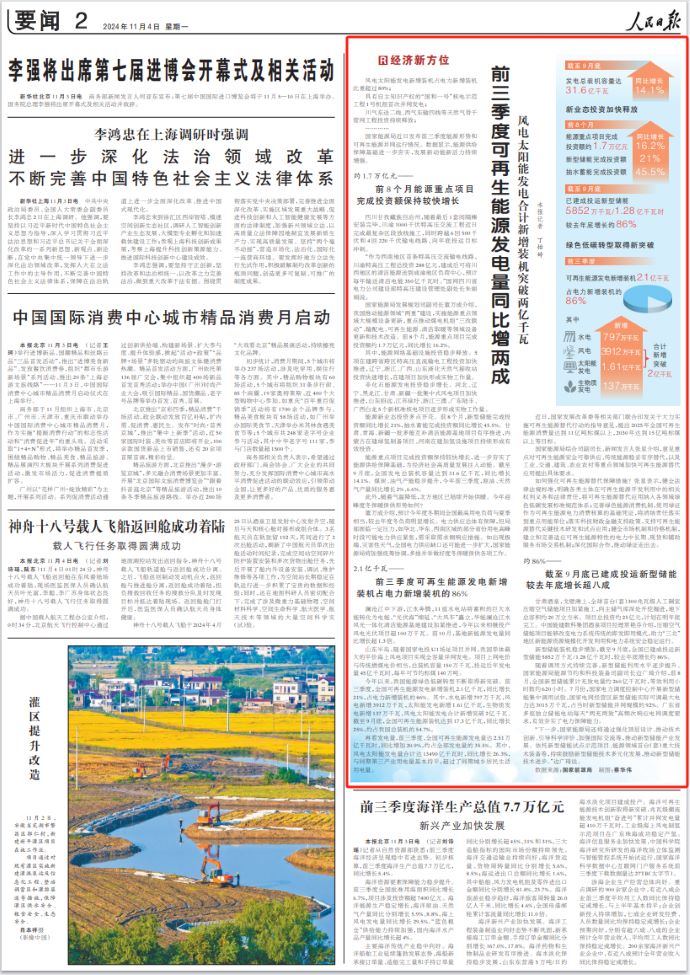 人民日報丨前三季度可再生能源發(fā)電量同比增兩成