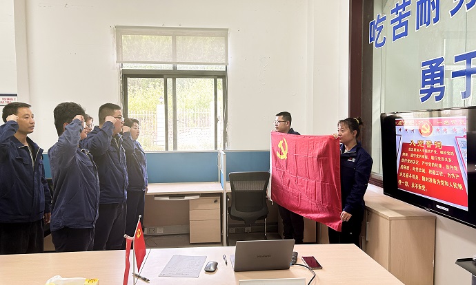 活動(dòng)伊始,莊嚴的升國旗、唱國歌儀式在嘎堆水電公司生活營(yíng)地舉行,鮮艷的五星紅旗在全體黨員和員工的注目禮中冉冉升起,雄壯的國歌聲響徹云霄。接著(zhù),嘎堆水電公司黨支部組織新黨員在黨員活動(dòng)室舉行了入黨宣誓儀式,并開(kāi)展了重溫入黨誓詞活動(dòng)。隨后,嘎堆水電公司黨支部書(shū)記謝鵬為大家上了一堂生動(dòng)的專(zhuān)題黨課。黨課圍繞黨的創(chuàng )新理論、黨的基本知識、黨的百年奮斗史、新時(shí)代偉大成就等方面展開(kāi),引導黨員們奮進(jìn)新征程、建功新時(shí)代。最后,黨員干部職工齊聚一堂,暢談黨的光輝歷程和豐功偉績(jì)。大家紛紛表示,立足崗位比貢獻,進(jìn)一步發(fā)揮好黨組織的戰斗堡壘作用和黨員的模范表率作用。
