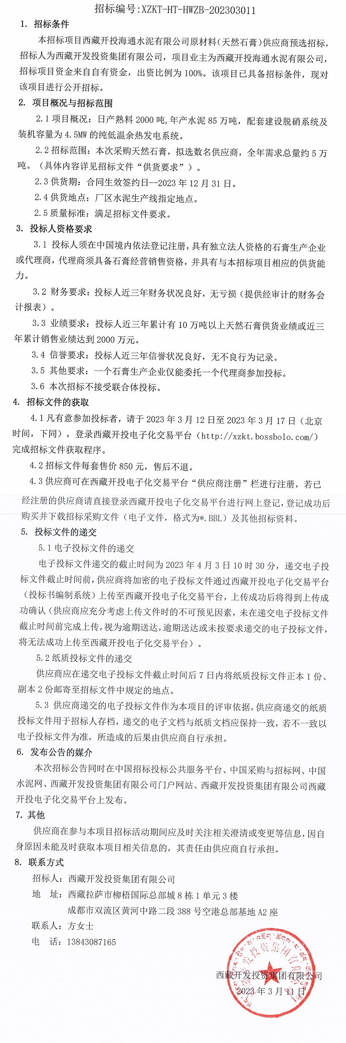 西藏開(kāi)投海通水泥有限公司原材料(天然石膏)