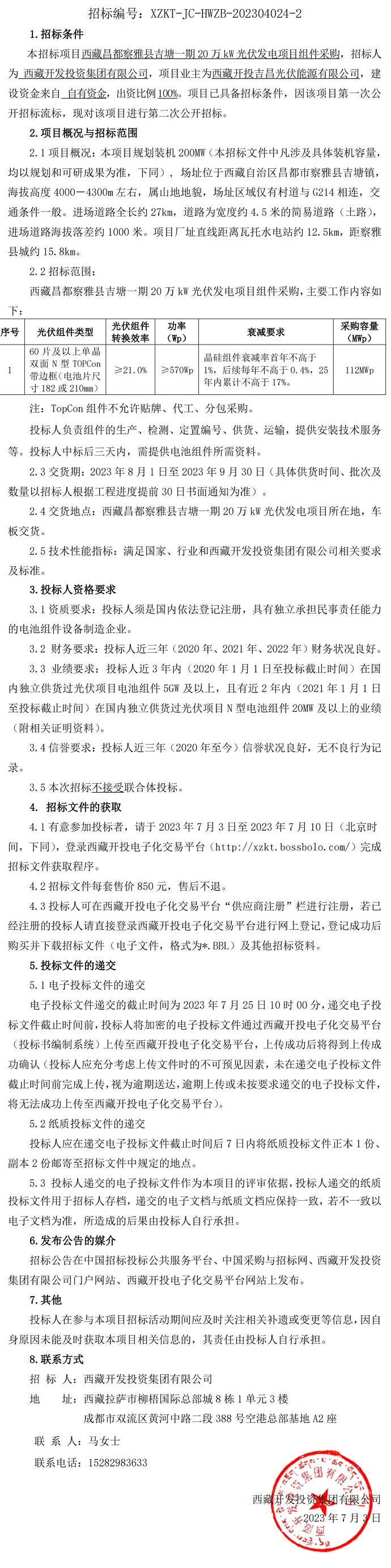 西藏昌都察雅縣吉塘一期20萬(wàn)kW光伏發(fā)電項目組件采購