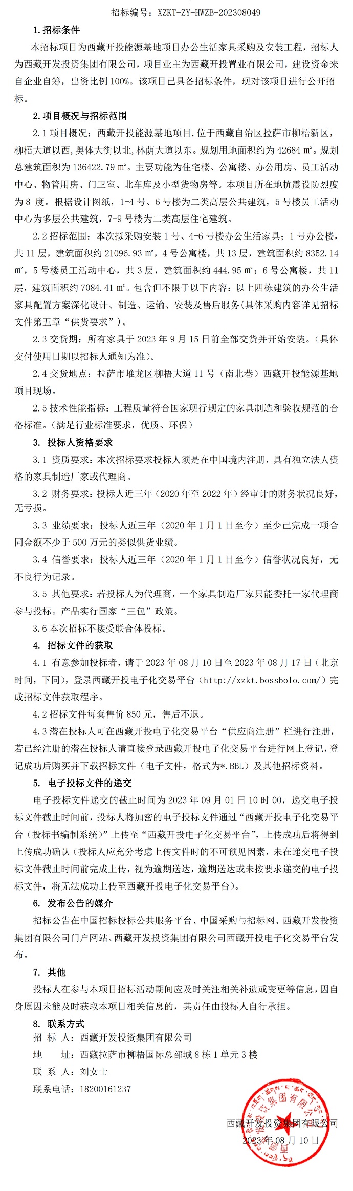 西藏開(kāi)投能源基地項目辦公生活家具采購及安裝工程