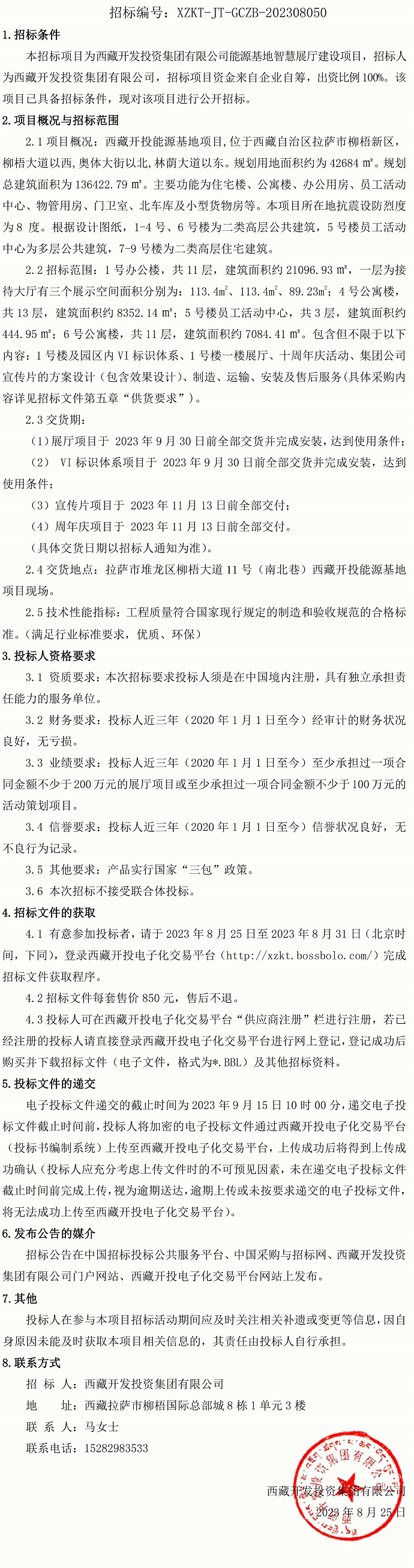 西藏開(kāi)發(fā)投資集團有限公司能源基地智慧展廳建設項目招標公告