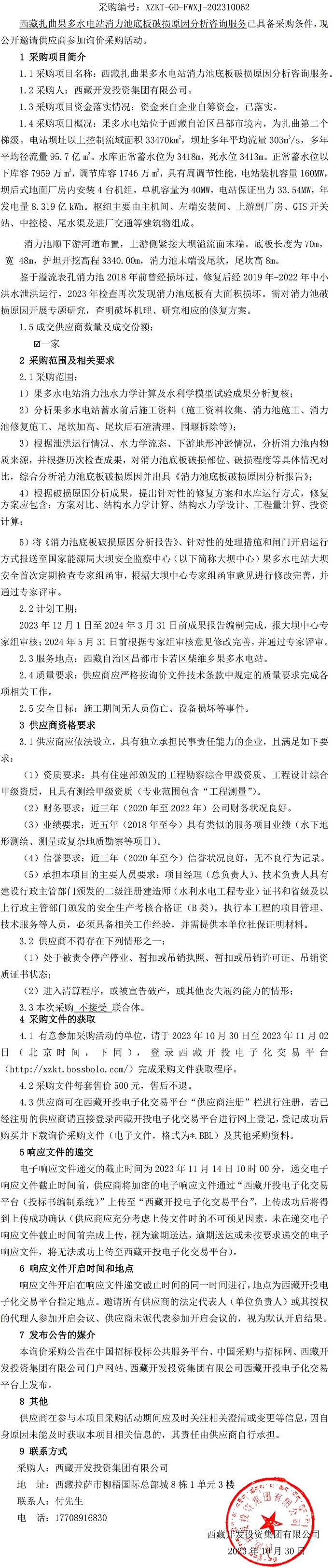 西藏扎曲果多水電站消力池底板破損原因分析咨詢(xún)服務(wù)詢(xún)價(jià)采購公告