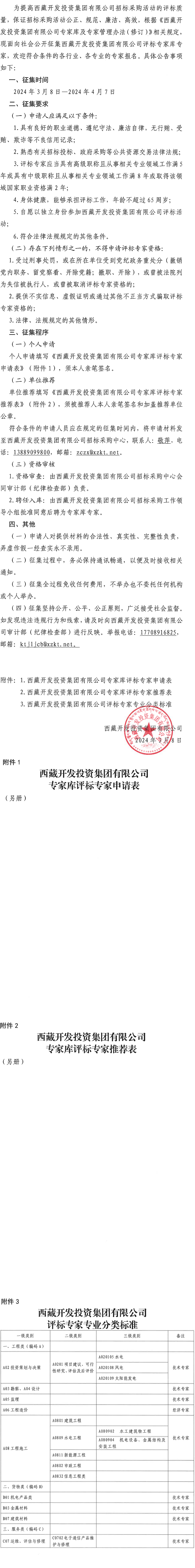 西藏開(kāi)發(fā)投資集團有限公司評標專(zhuān)家庫專(zhuān)家征集公告
