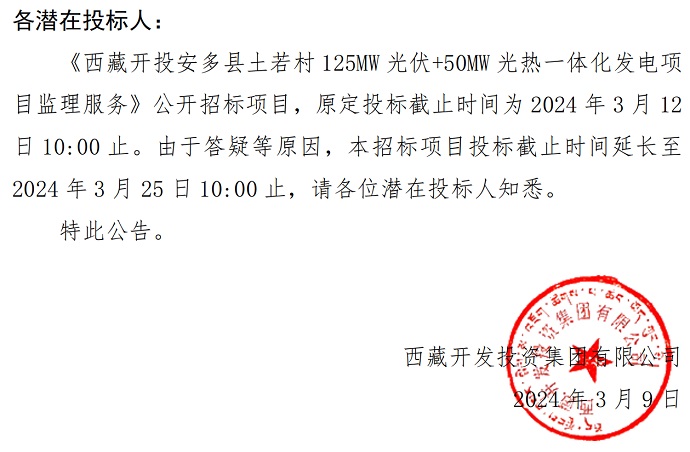 關(guān)于延長(cháng)《西藏開(kāi)投安多縣土若村 125MW光伏+50MW