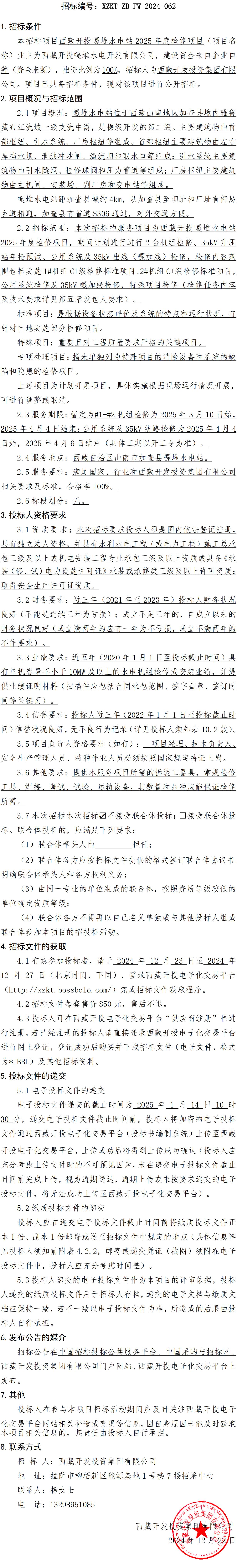 西藏開(kāi)投嘎堆水電站2025年度檢修項目招標公告