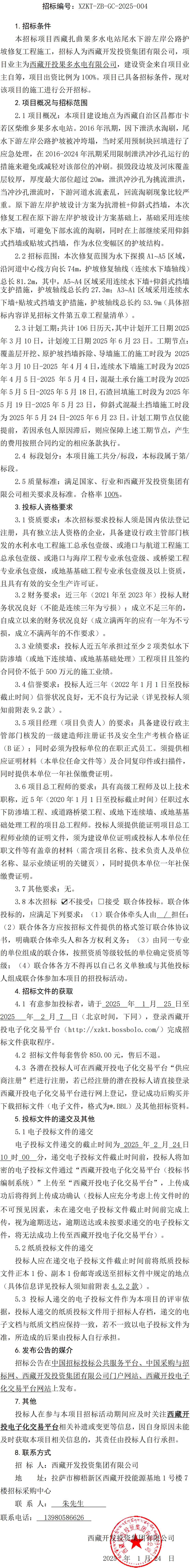 西藏扎曲果多水電站尾水下游左岸公路護坡修復工程施工招標公告