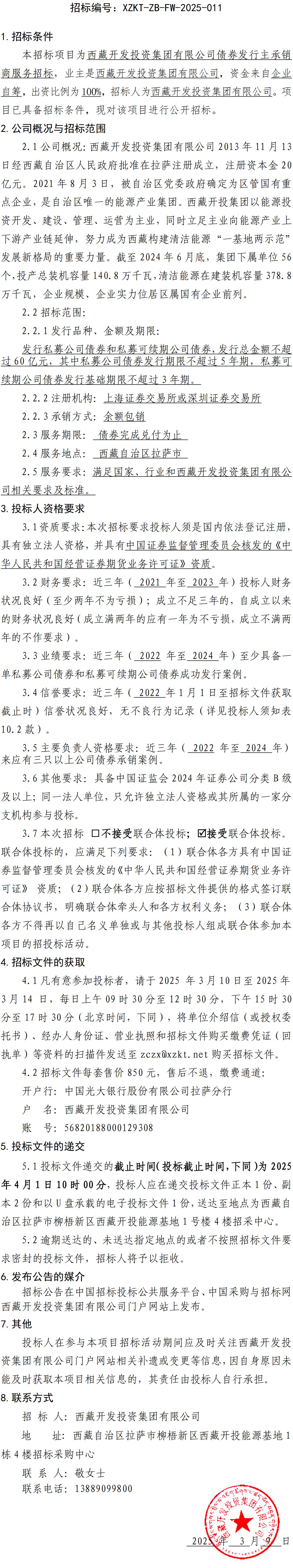 西藏開(kāi)發(fā)投資集團有限公司債券發(fā)行主承銷(xiāo)商服務(wù)招標公告