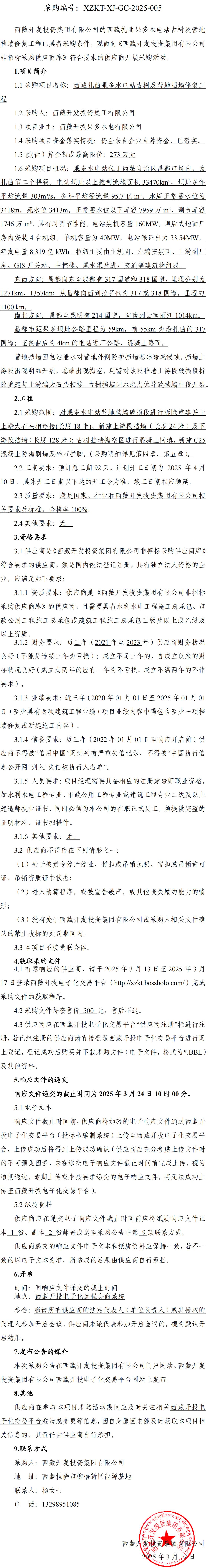 西藏扎曲果多水電站古樹(shù)及營(yíng)地擋墻修復工程詢(xún)價(jià)采購公告