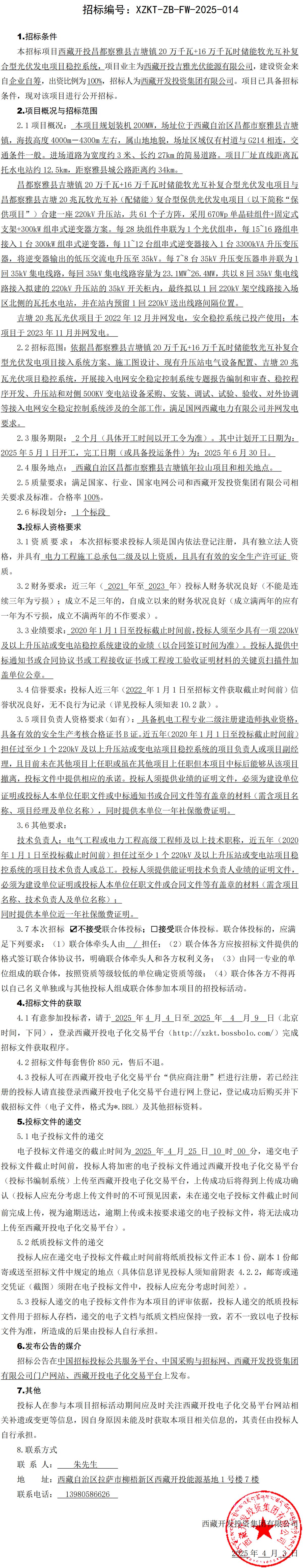 西藏開(kāi)投昌都察雅縣吉塘鎮20萬(wàn)千瓦+16萬(wàn)千瓦時(shí)儲能牧光互補復合型光伏發(fā)電項目穩控系統招標公告