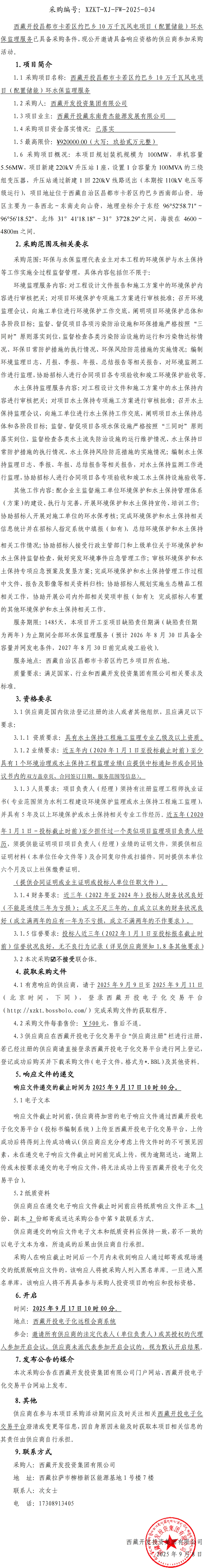 西藏開(kāi)投昌都市卡若區約巴鄉10萬(wàn)千瓦風(fēng)電項目(配置儲能)環(huán)水保監理服務(wù)詢(xún)比采購公告