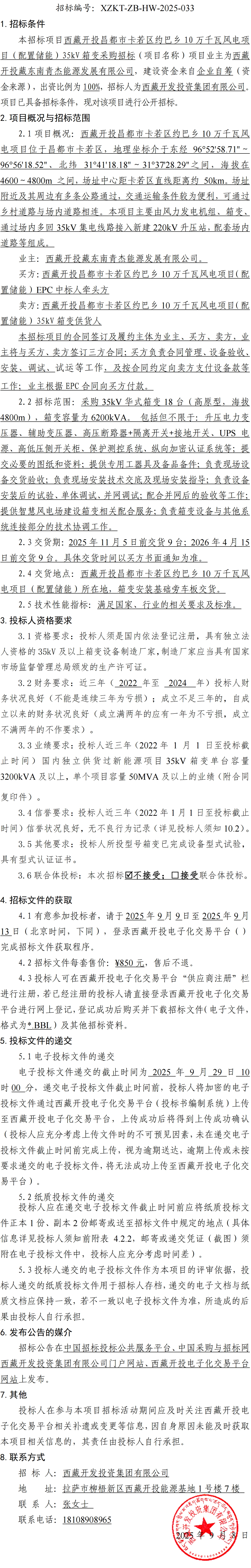 西藏開(kāi)投昌都市卡若區約巴鄉10萬(wàn)千瓦風(fēng)電項目(配置儲能)35kV 箱變采購招標公告